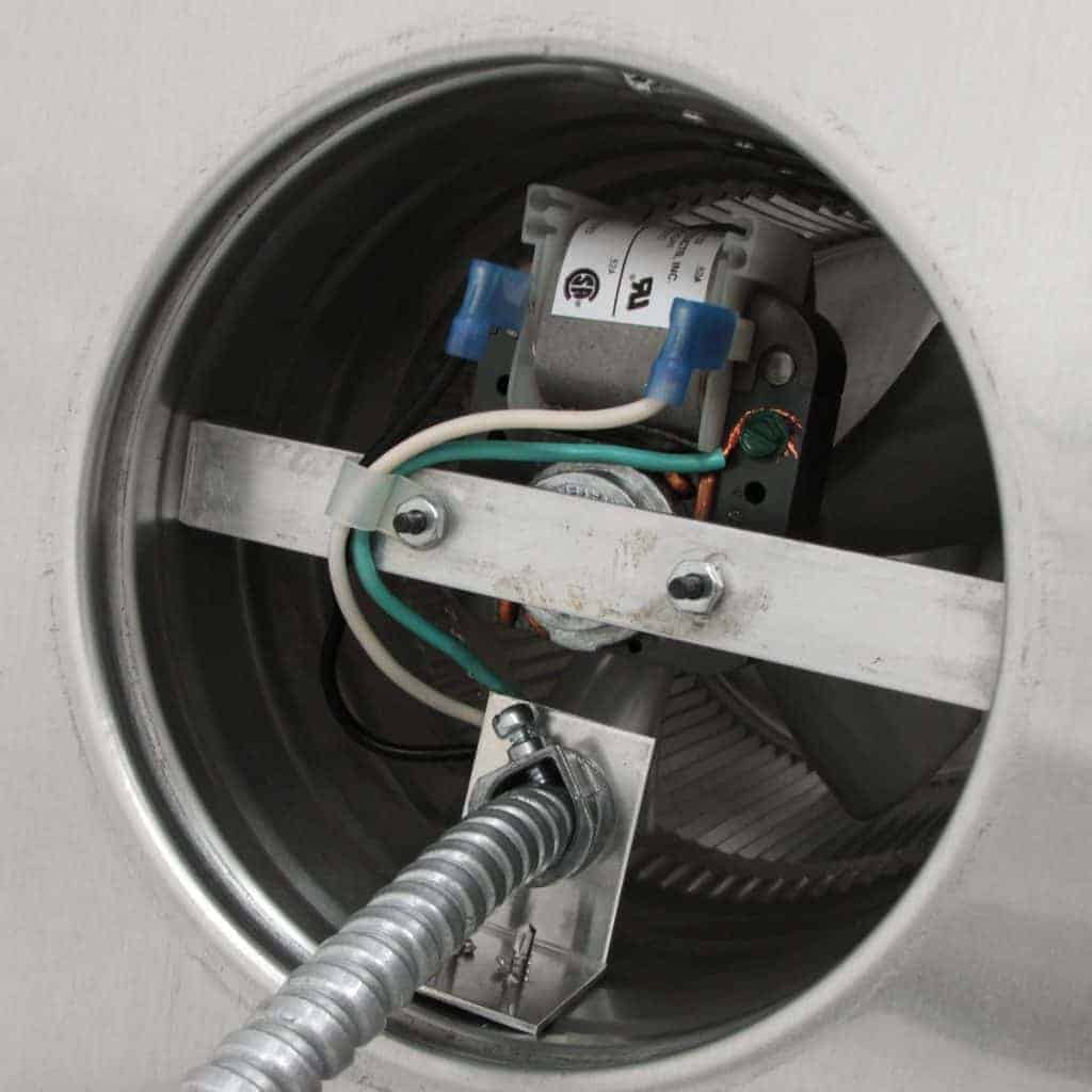 This attic fan exhausts air passively when the motor is off because of the Venturi Effect. When the wind blows against the outer louvers, this creates an upward draft, which allows air to flow freely out of the attic fan.