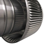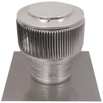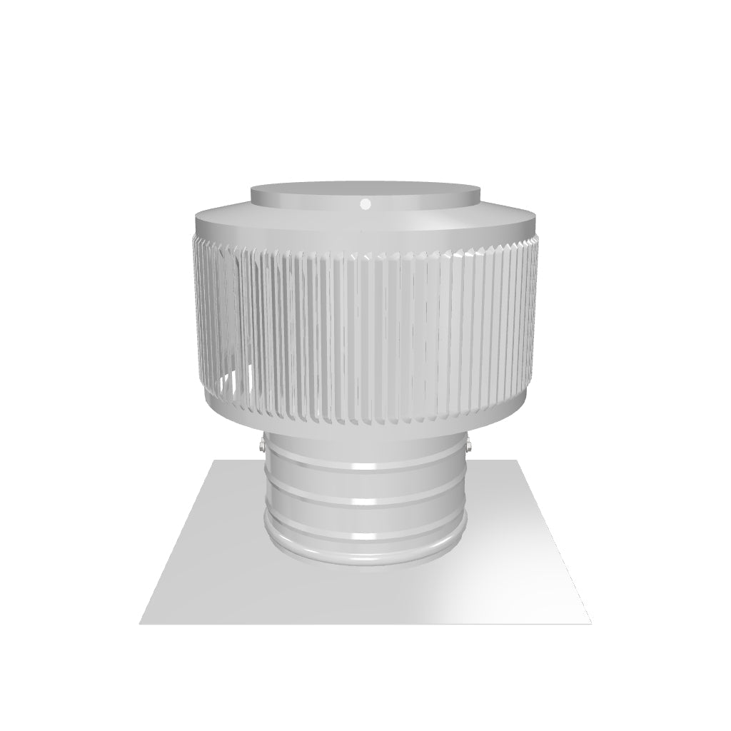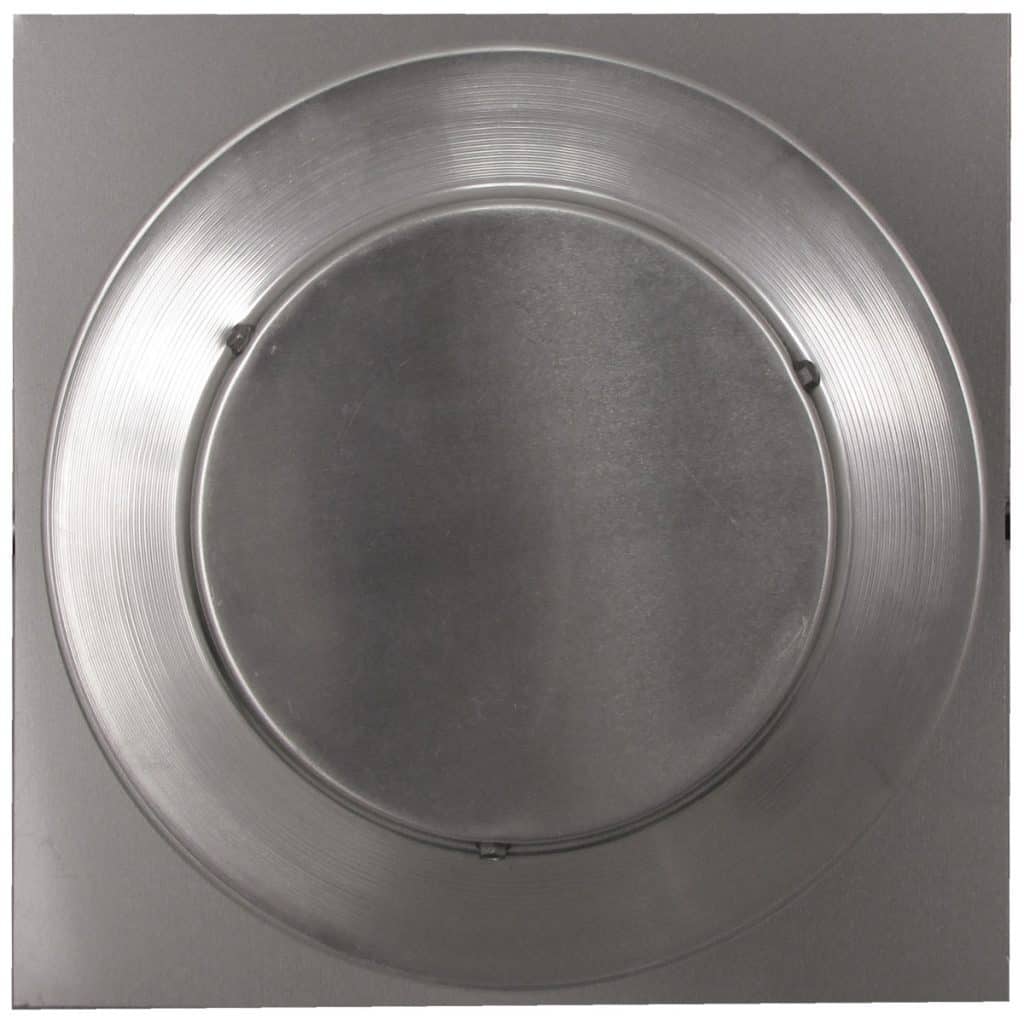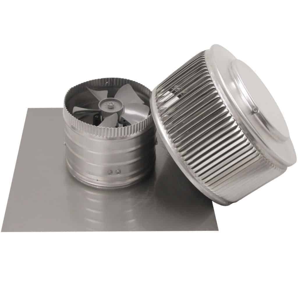 The 6-inch Aura Attic Fan is 6 inches in diameter and has a 4-inch tall collar. The model AF-6-C4 exhausts air out at 120 CFM. All 6-inch attic fans have a standard 11" x 11" square flange (base).