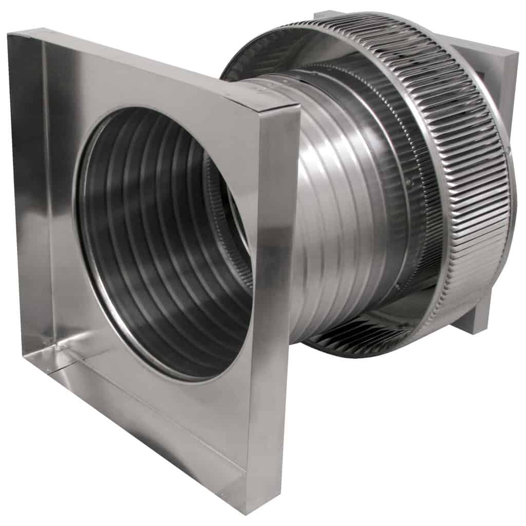 The 10-inch Aura Solar Exhaust Fan is 10 inches in diameter and has an 8-inch tall collar. The model ASF-10-C8-CMF exhausts air at 524 CFM. All 10-inch solar exhaust fans come with a standard 13.5 x 13.5-inch curb mount flange.
