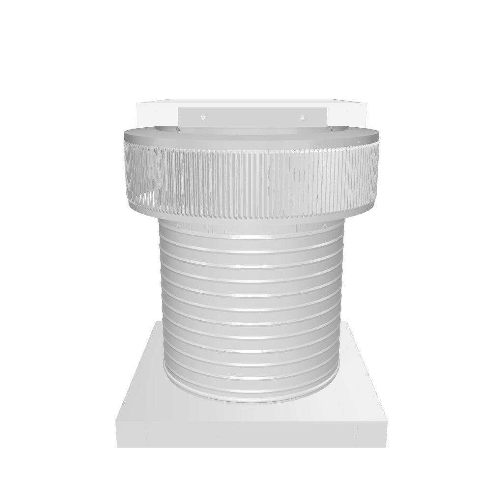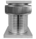 The 14-inch Aura Solar Exhaust Fan is 14 inches in diameter and has a 12-inch tall collar. The model ASF-14-C12-CMF exhausts air at 1,007 CFM. All 14-inch solar exhaust fans have a standard 18 x 18-inch curb mount flange.