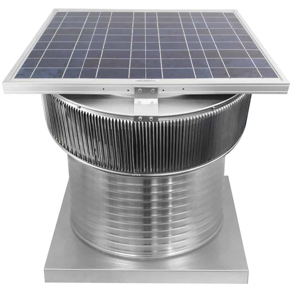 The Aura Solar Exhaust Fan works off of direct sunlight. This solar exhaust fan uses wind to power the ventilator on cloudy days and evenings.