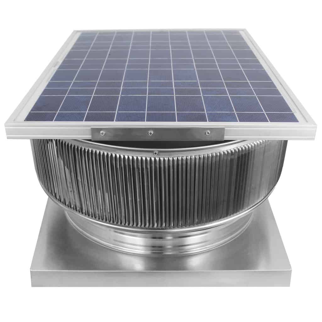 This solar exhaust fan has a curb mount flange, which allows easy installation on AVP's prefabricated roof curbs or any other roof curb as long as the dimensions are 23 7/8 inches x 23 7/8 inches and square in shape. If the curb is to be covered in roofing material, then the curb should measure 23 1/2 inches x 23 1/2 inches.