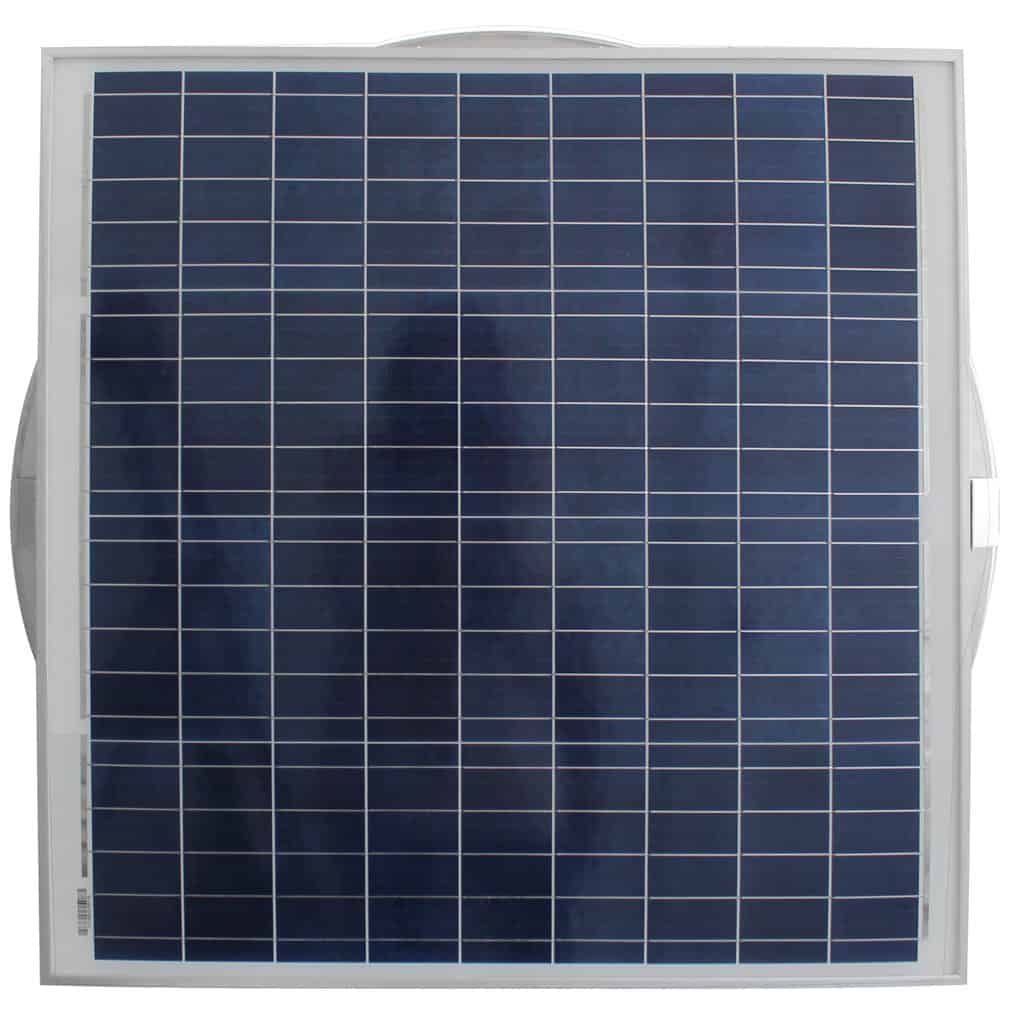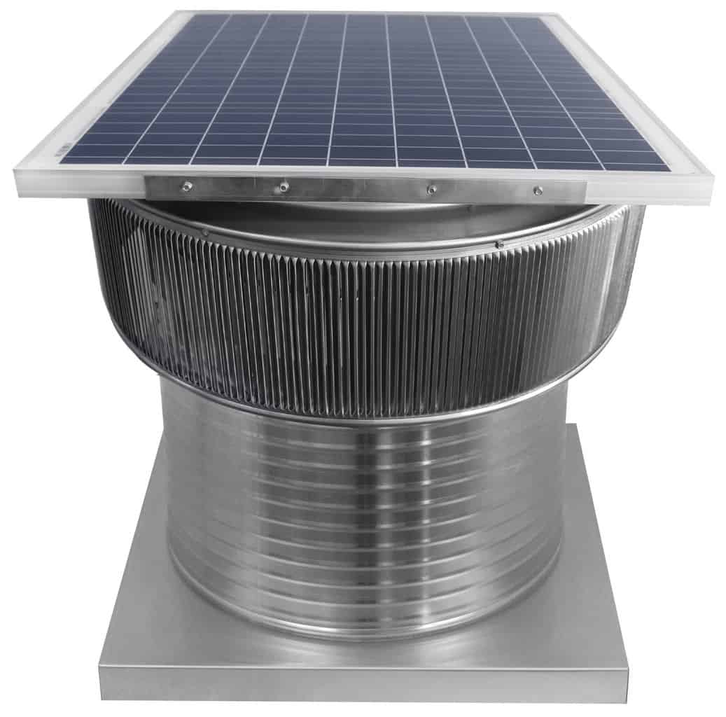 The Aura Solar Exhaust Fan works off of direct sunlight. This solar exhaust fan uses wind to power the ventilator on cloudy days and evenings.
