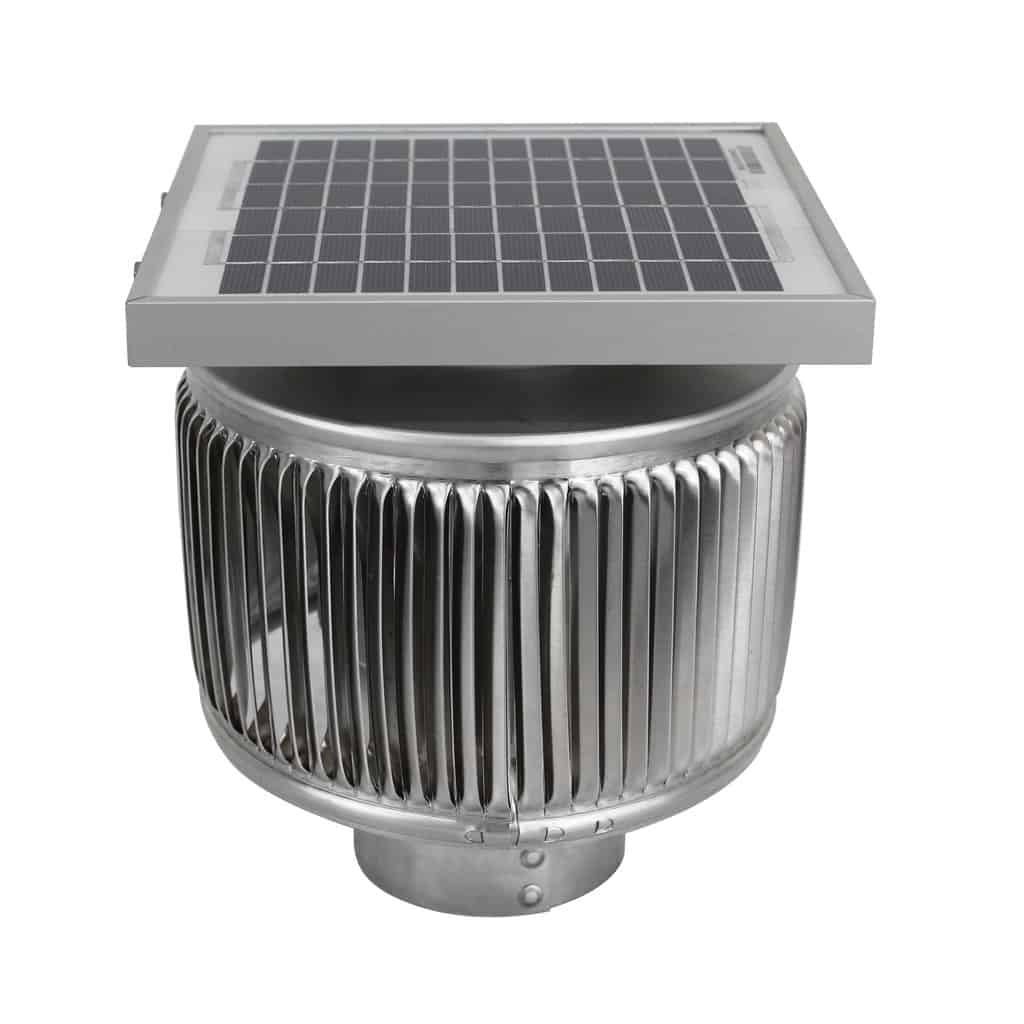 This Vent Cap uses both solar and wind power to ventilate PVC pipes. The solar panel only works in bright direct sunlight. However, the fan will still work passively by using the Venturi Effect. When the wind blows against the outer louvers this creates an upward draft which allows air to freely flow in and out of the vent.