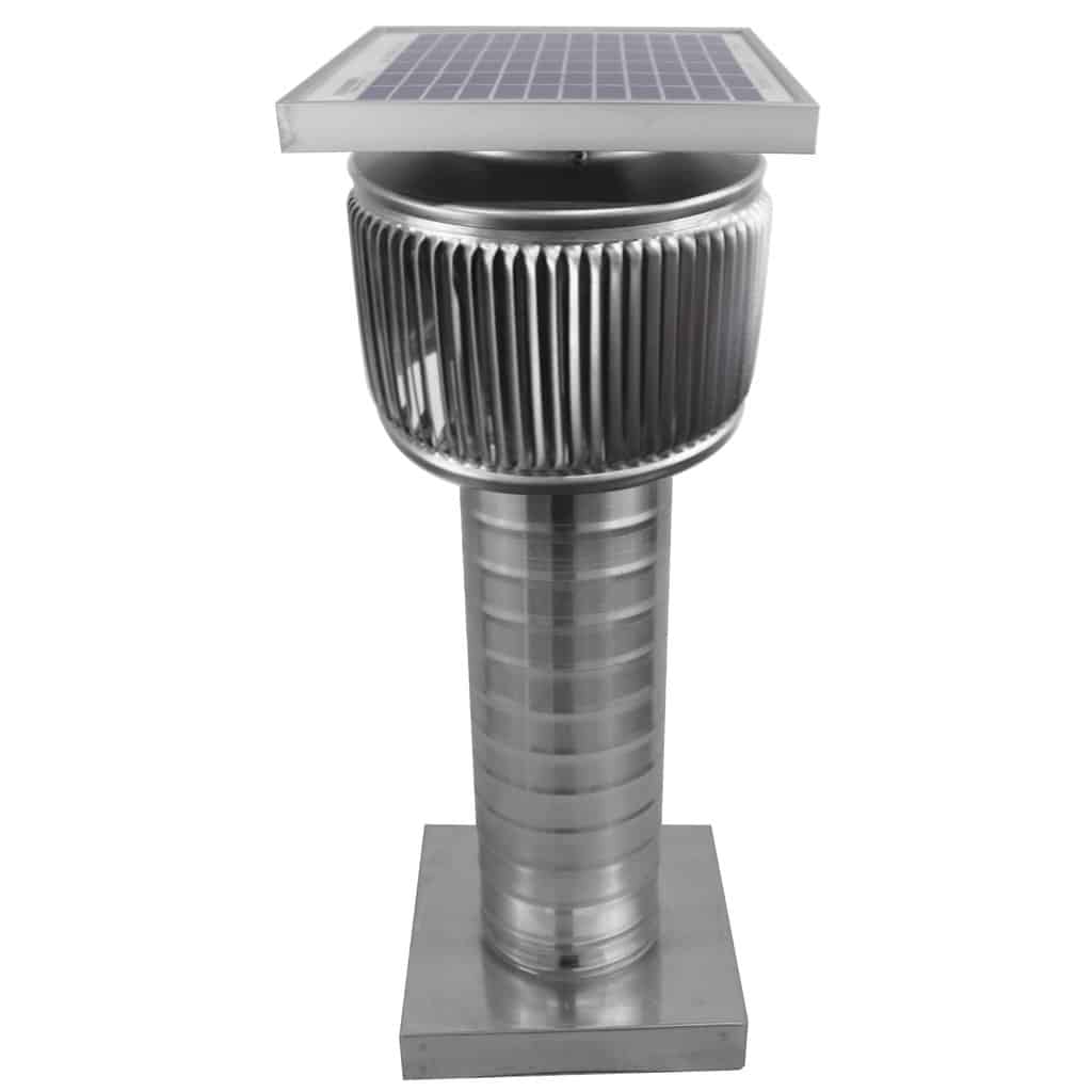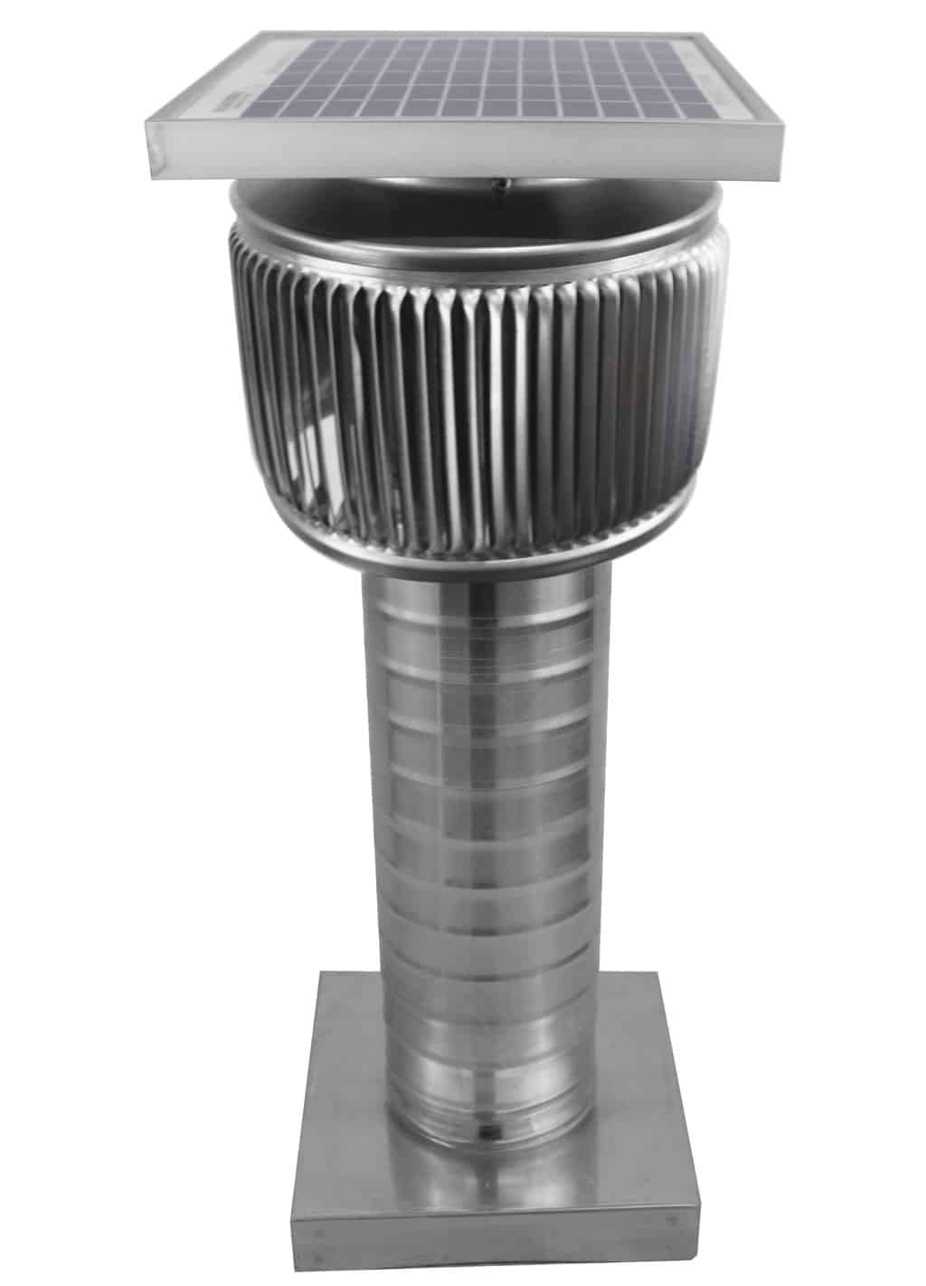 This solar exhaust fan has a curb mount flange, allowing easy installation on AVP's prefabricated roof curbs or any other roof curb as long as the dimensions are 7 3/8 inches x 7 3/8 inches and square in shape. If the curb is to be covered in roofing material, then the curb should measure 7 inches x 7 inches.