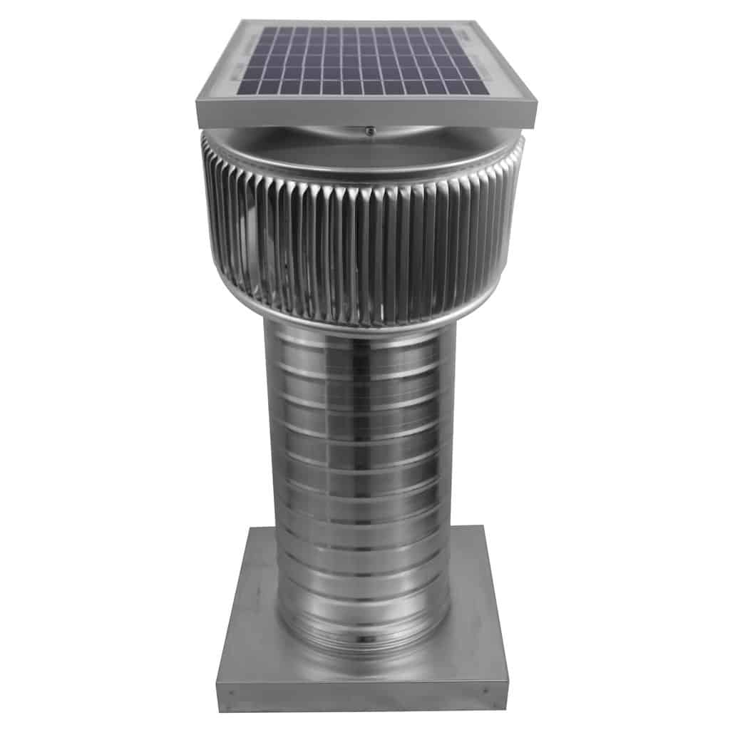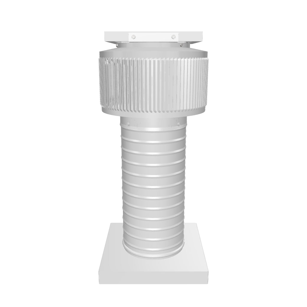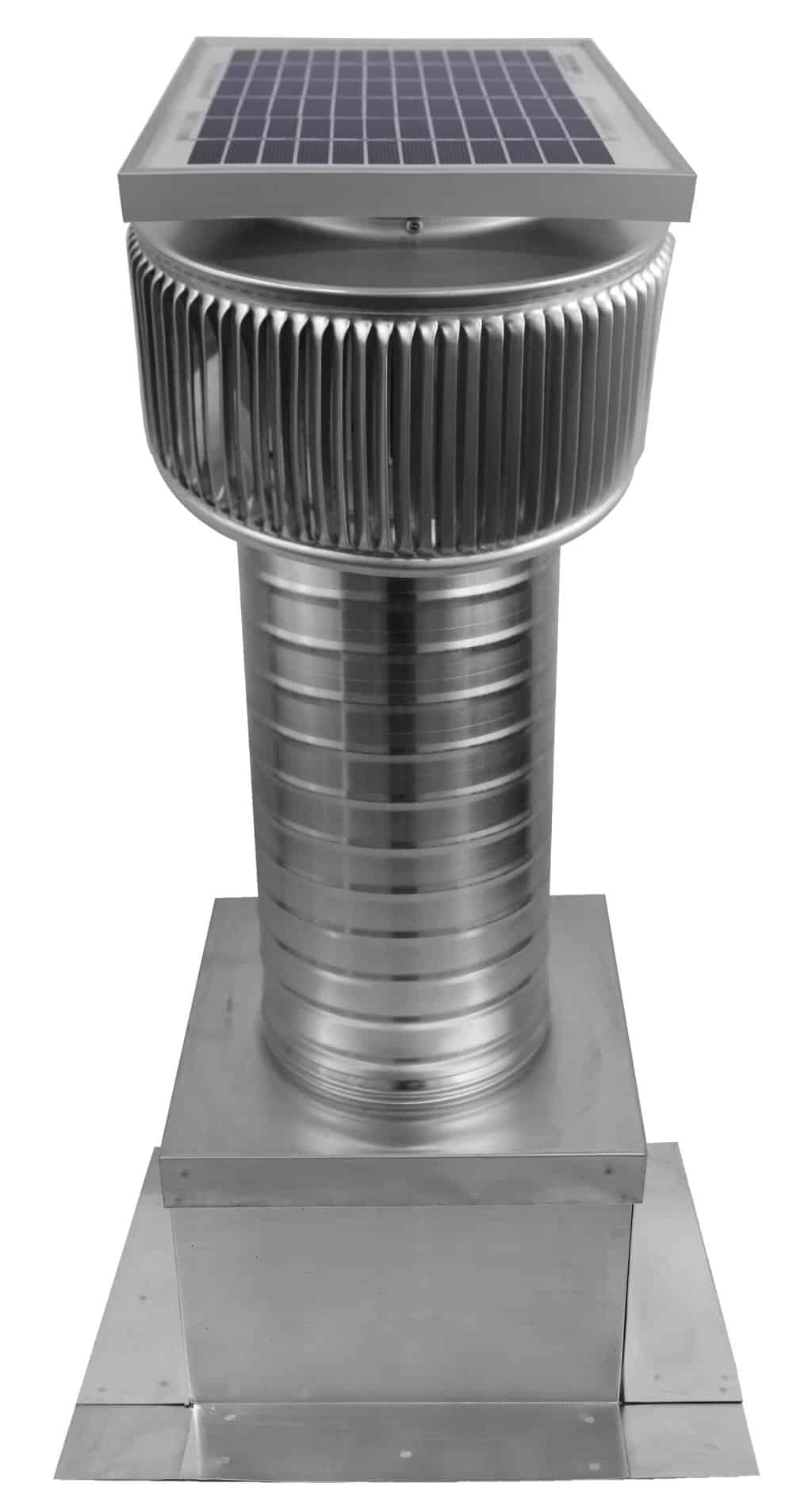 The 6-inch Aura Solar Attic Fan is 6 inches in diameter and has a 12-inch tall collar. The model ASF-6-C12-CMF exhausts air out at 205 CFM. All 6-inch solar exhaust fans come with a standard 9.5 x 9.5-inch curb mount flange.