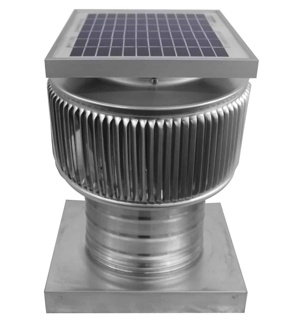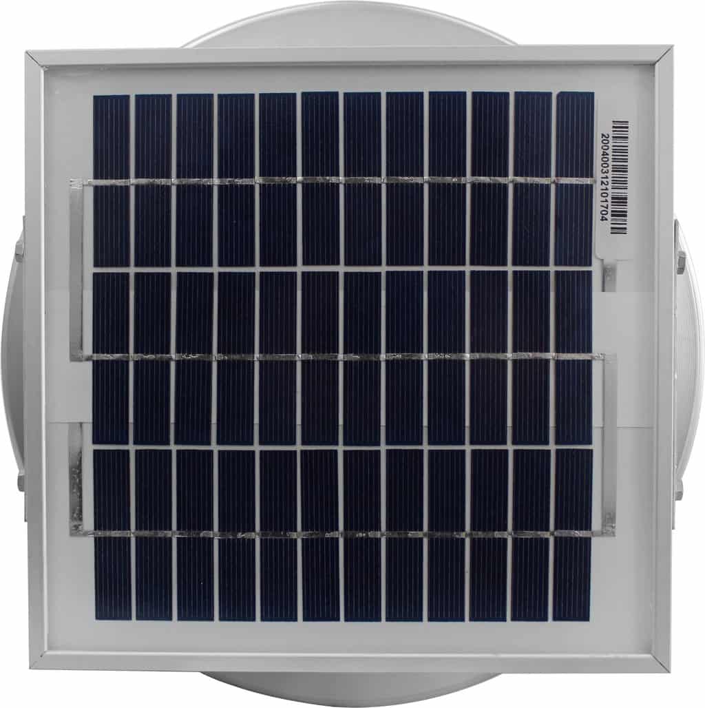 The Aura Solar Exhaust Fan works off of direct sunlight. This solar exhaust fan uses wind to power the ventilator on cloudy days and evenings.