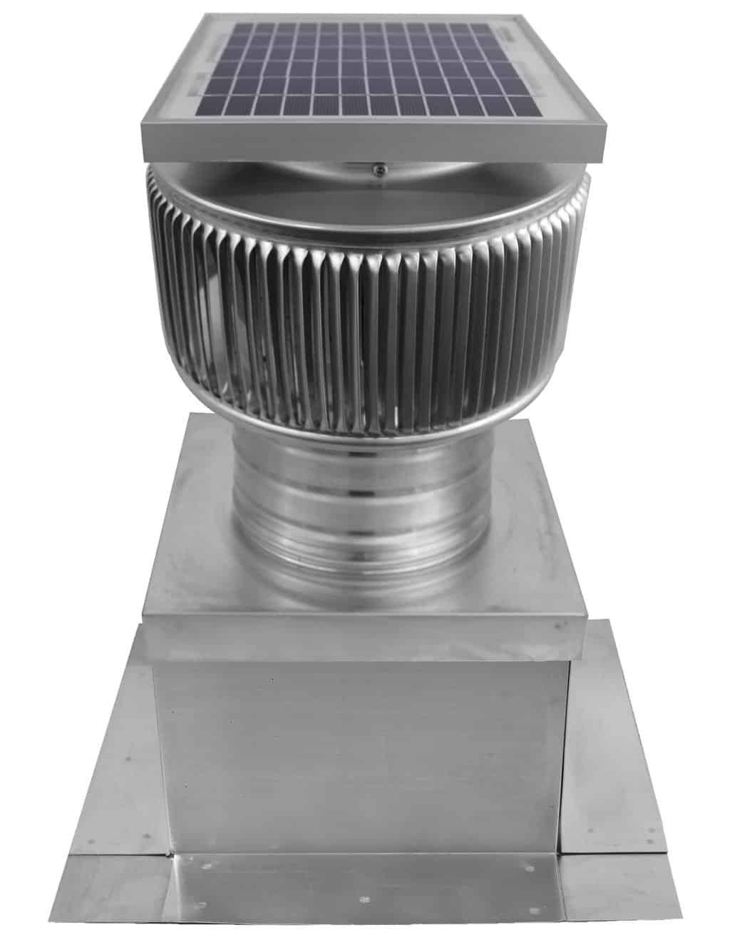 This solar exhaust fan has a curb mount flange, which allows easy installation on AVP's prefabricated roof curbs or any other roof curb as long as the dimensions are 9 3/8 inches x 9 3/8 inches and square in shape. If the curb is to be covered in roofing material, then the curb should measure 9 inches x 9 inches.