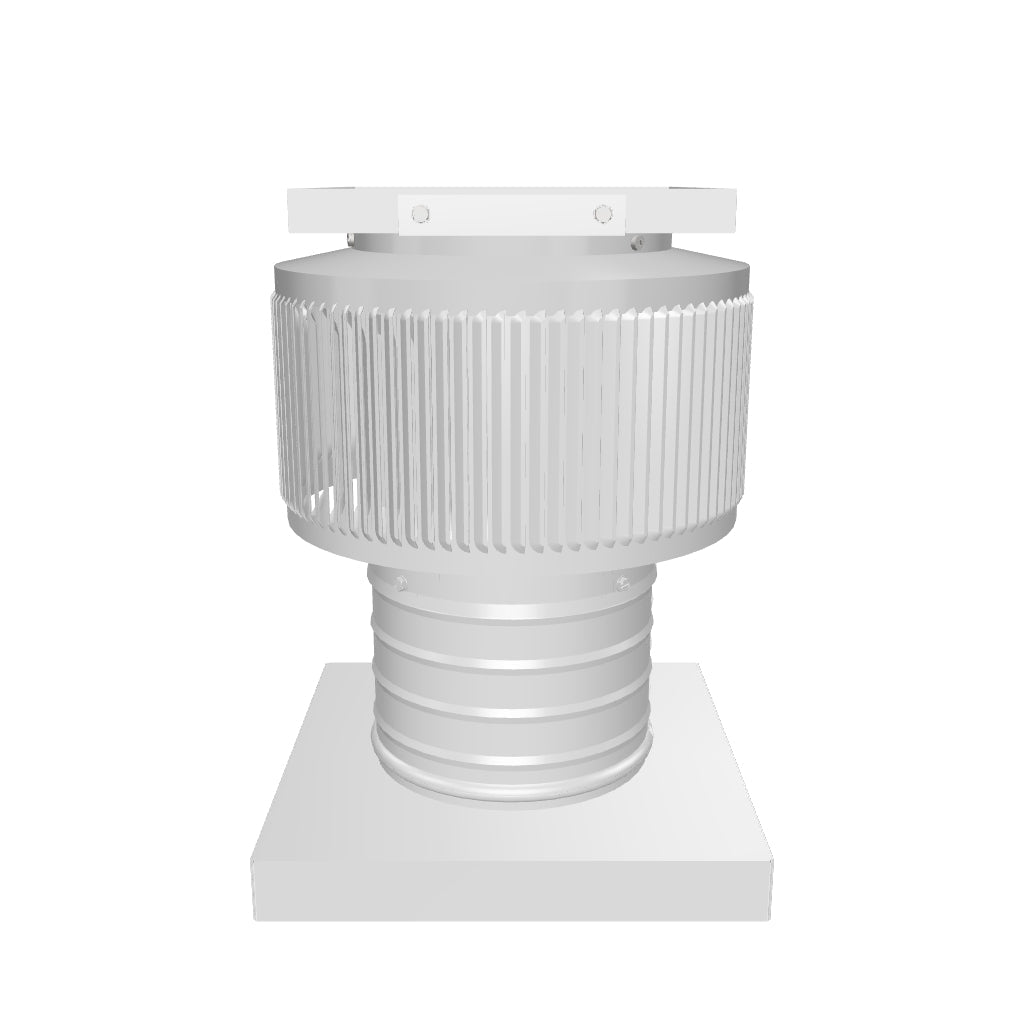 The 6-inch Aura Solar Exhaust Fan is 6 inches in diameter and has a 4-inch tall collar. The model ASF-6-C4-CMF exhausts air out at 205 CFM. All 6-inch solar exhaust fans have a standard 9.5 x 9.5-inch curb mount flange.