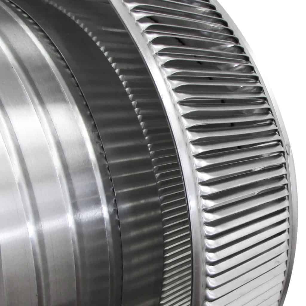 Aura Gravity Ventilators rely on the Venturi Effect, which occurs when the wind blows against the outer louvers. This creates a spinning upward draft through the vent, allowing air to flow dynamically. Even the slightest breeze can create exhaust ventilation to draw out air from the attic.