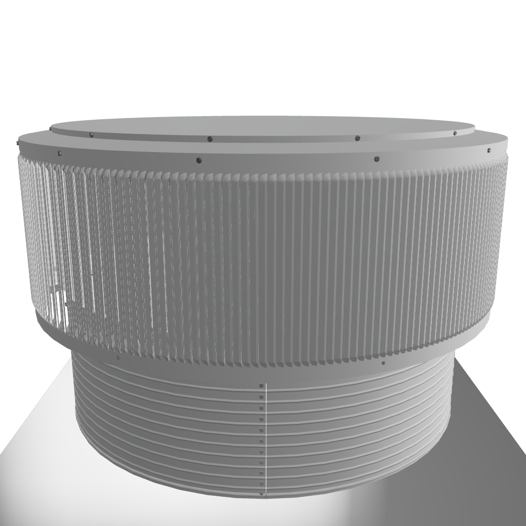 The 42-inch Aura Gravity Vent is 42 inches in diameter and has a 12-inch tall collar. The model AV-42-C12 has 1,384 inches of Net Free Area (NFA). All 42-inch gravity ventilators have a standard 52" x 52" square flange.