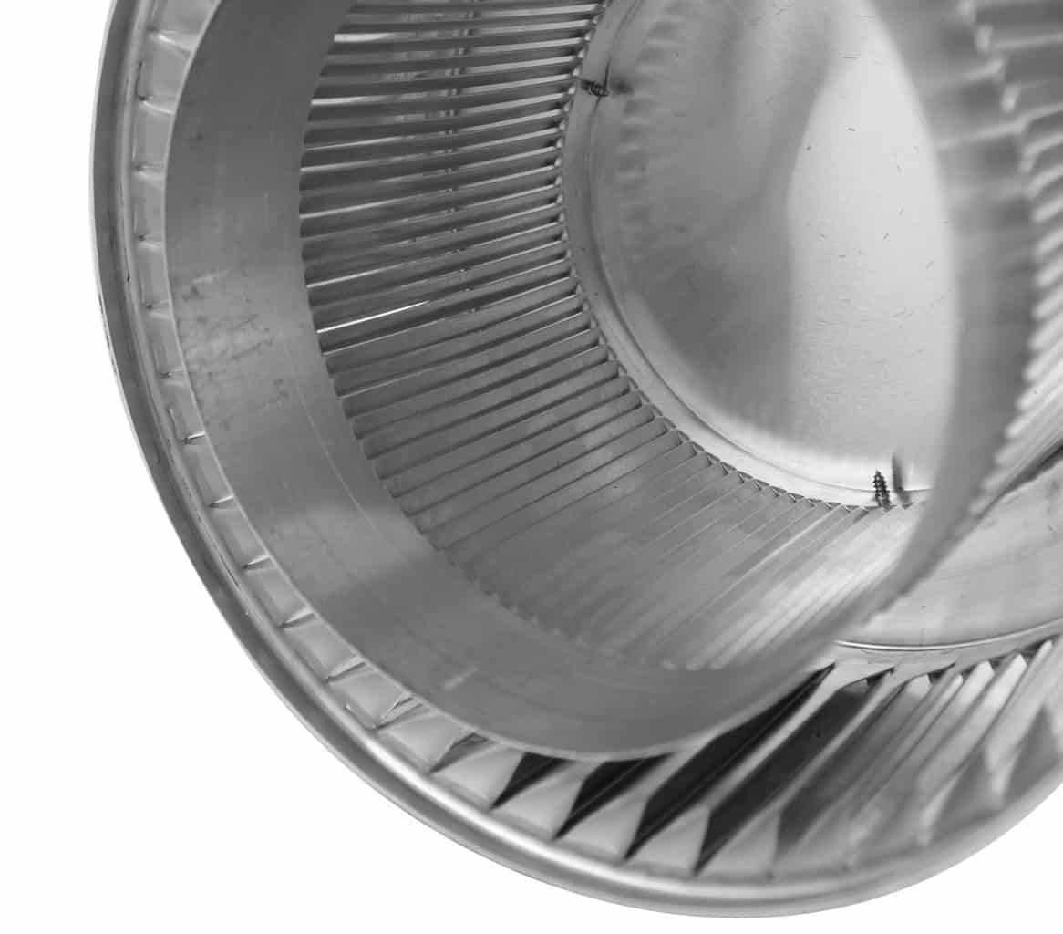 Aura Gravity Ventilators rely on the Venturi Effect, which occurs when the wind blows against the outer louvers. This creates a spinning upward draft through the vent, allowing air to flow dynamically. Even the smallest breeze can create exhaust ventilation to draw out air from the vent.