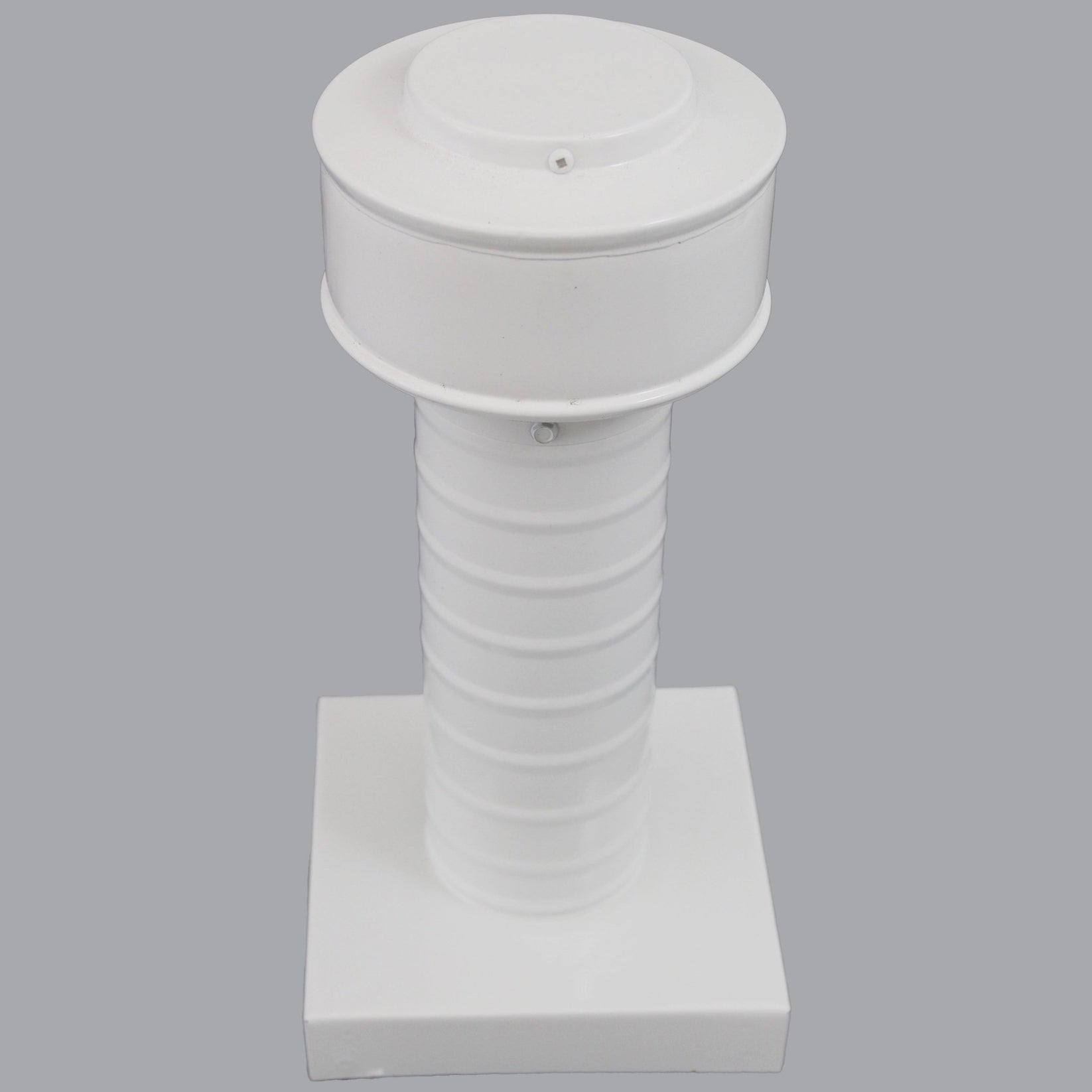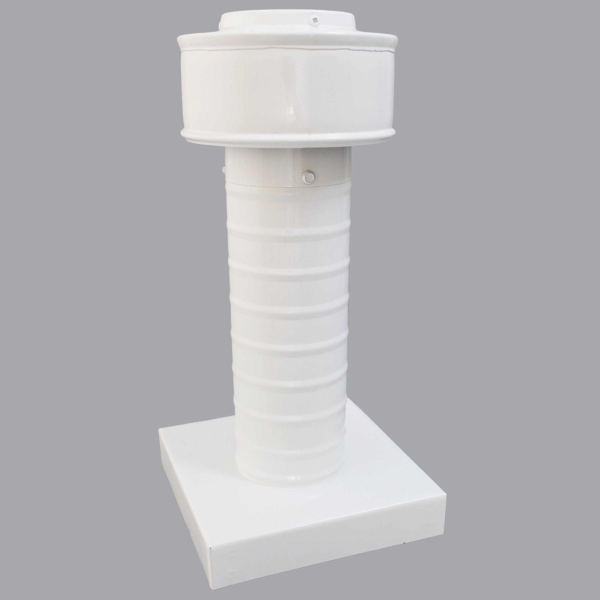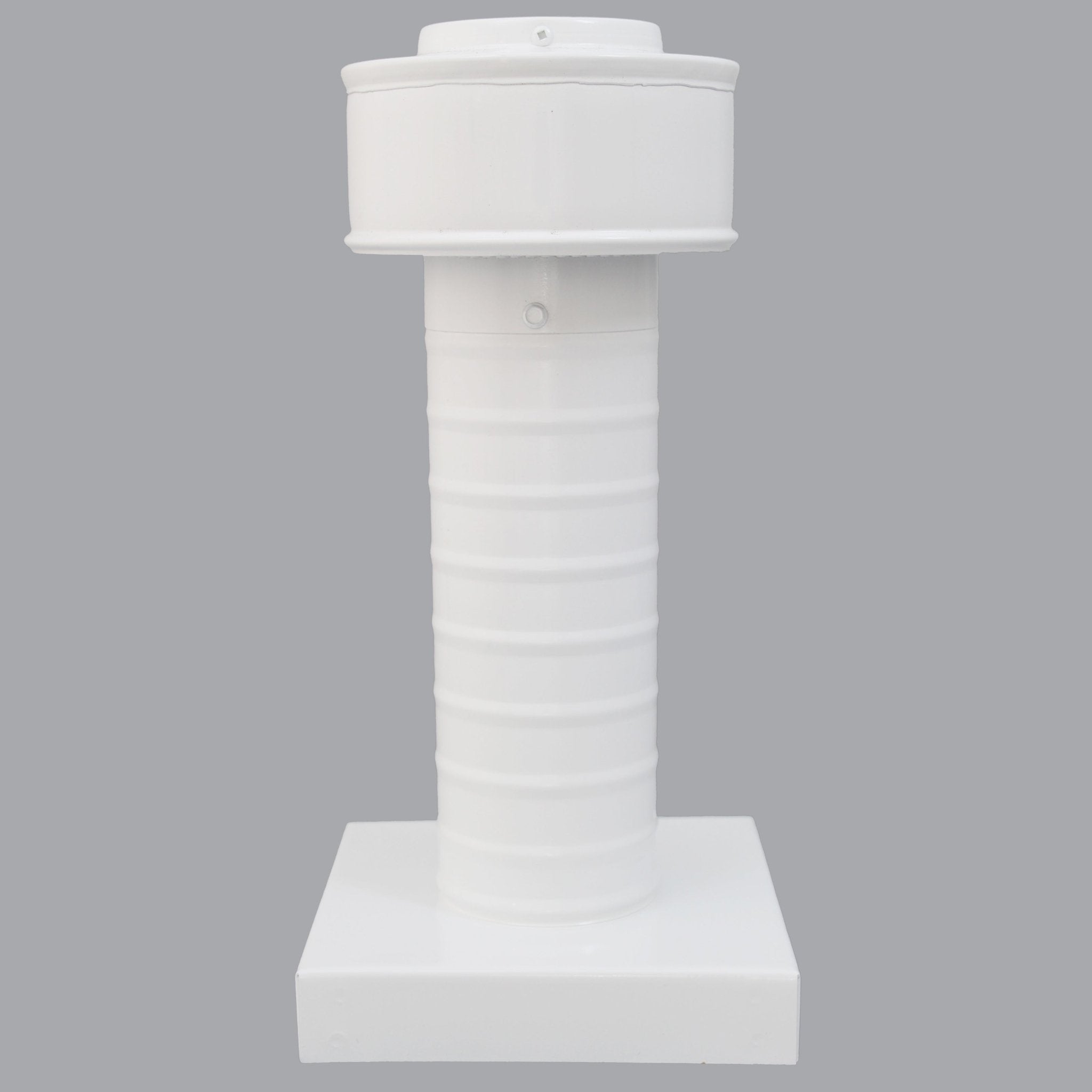 The 3-inch Keepa Attic Vent with Curb Mount Base removes moisture from the attic during the winter and heat during the summer, extending the life of the building structure. The 11-inch tall collar is suitable for all locations, including those that accumulate high snowfall. In addition, the round design is aerodynamic and can withstand wind speeds beyond 200 mph.