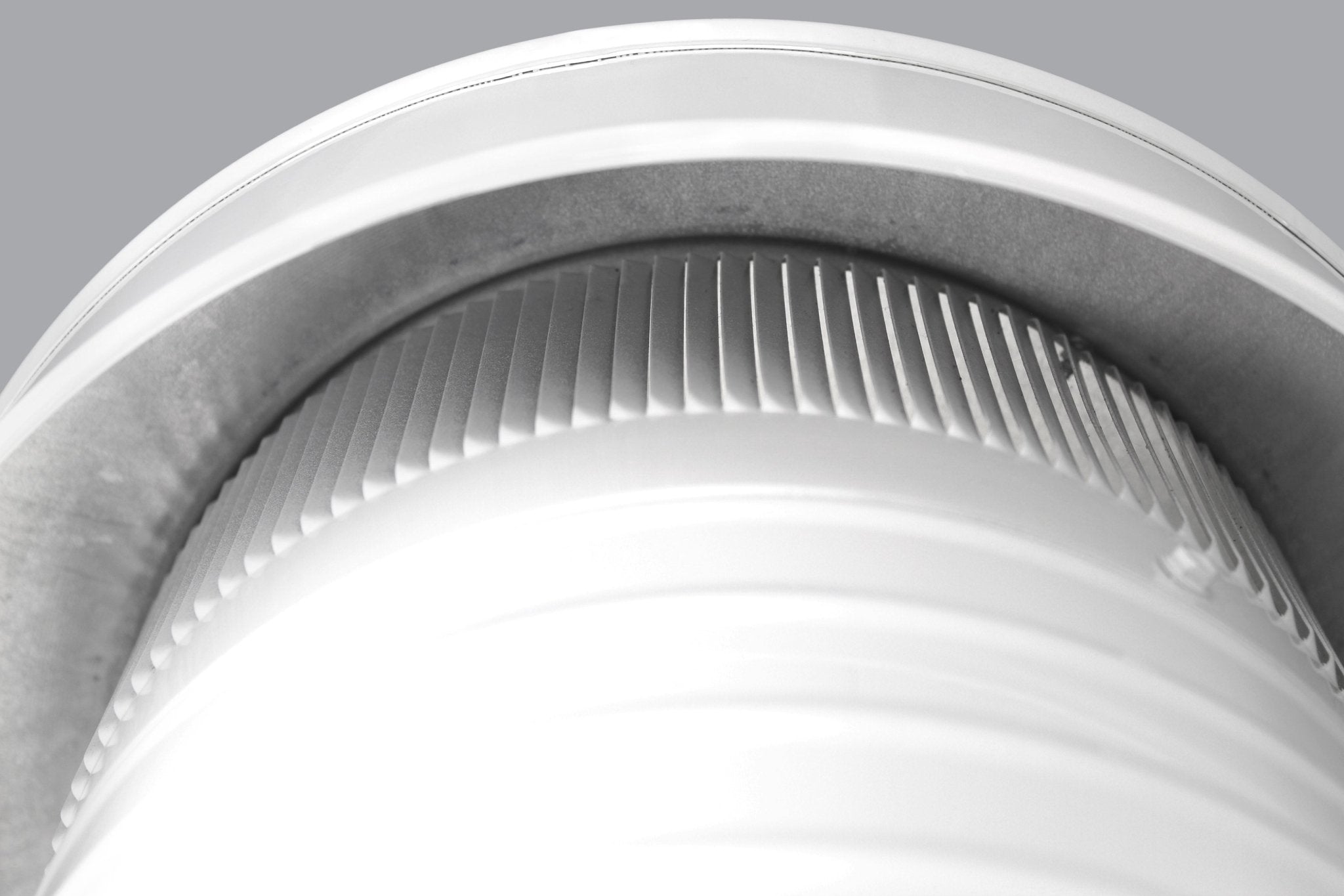 with Curb Mount Base removes moisture from the attic during the winter and heat during the summer, extending the life of the building structure. The 11-inch tall collar is suitable for all locations, including those that accumulate high snowfall. In addition, the round design is aerodynamic and can withstand wind speeds beyond 200 mph.