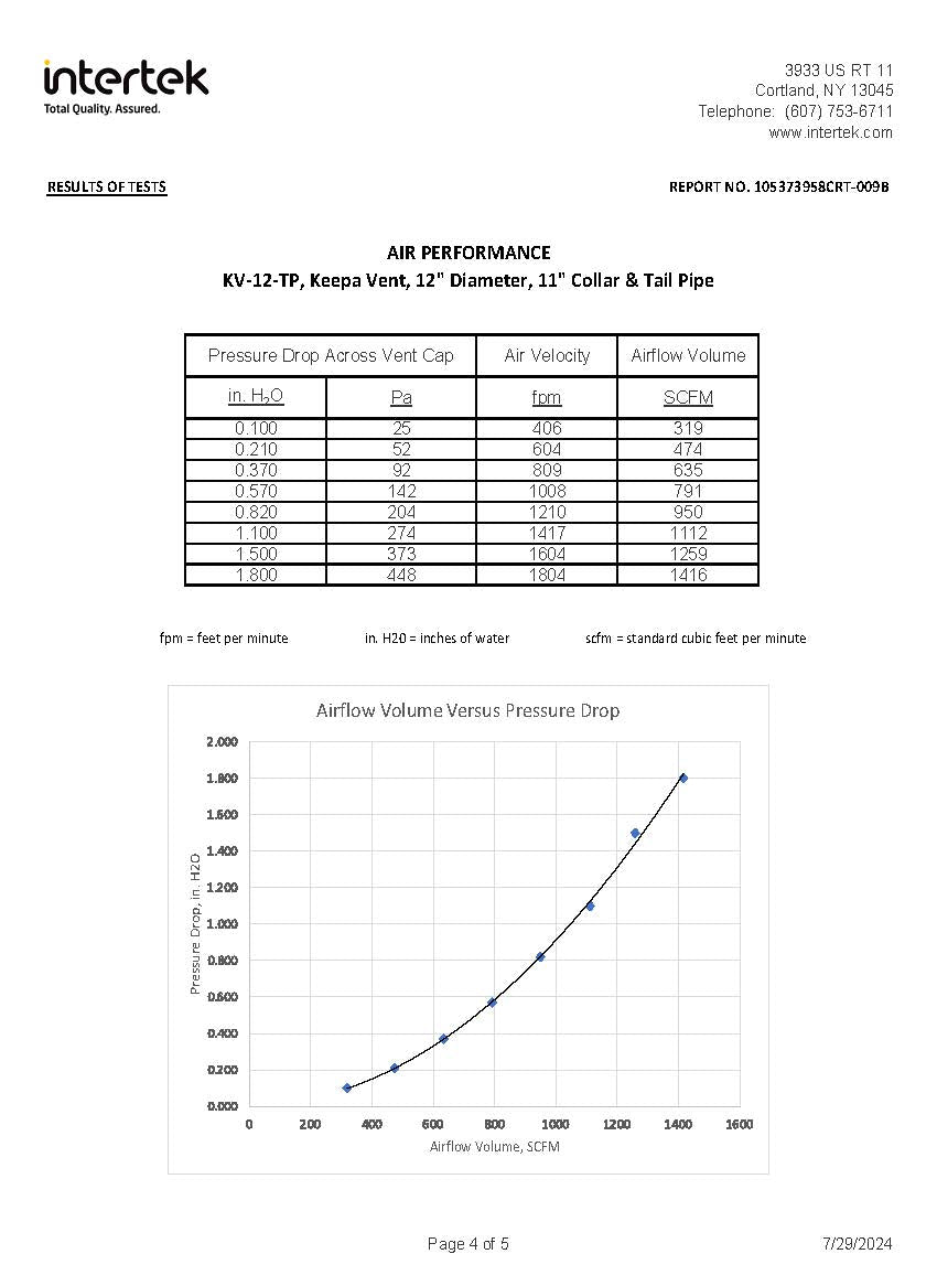 12 inch Keepa Roof Jack Vent Cap | 12 inch Roof Vent with Tailpipe | Model KV-12-TP