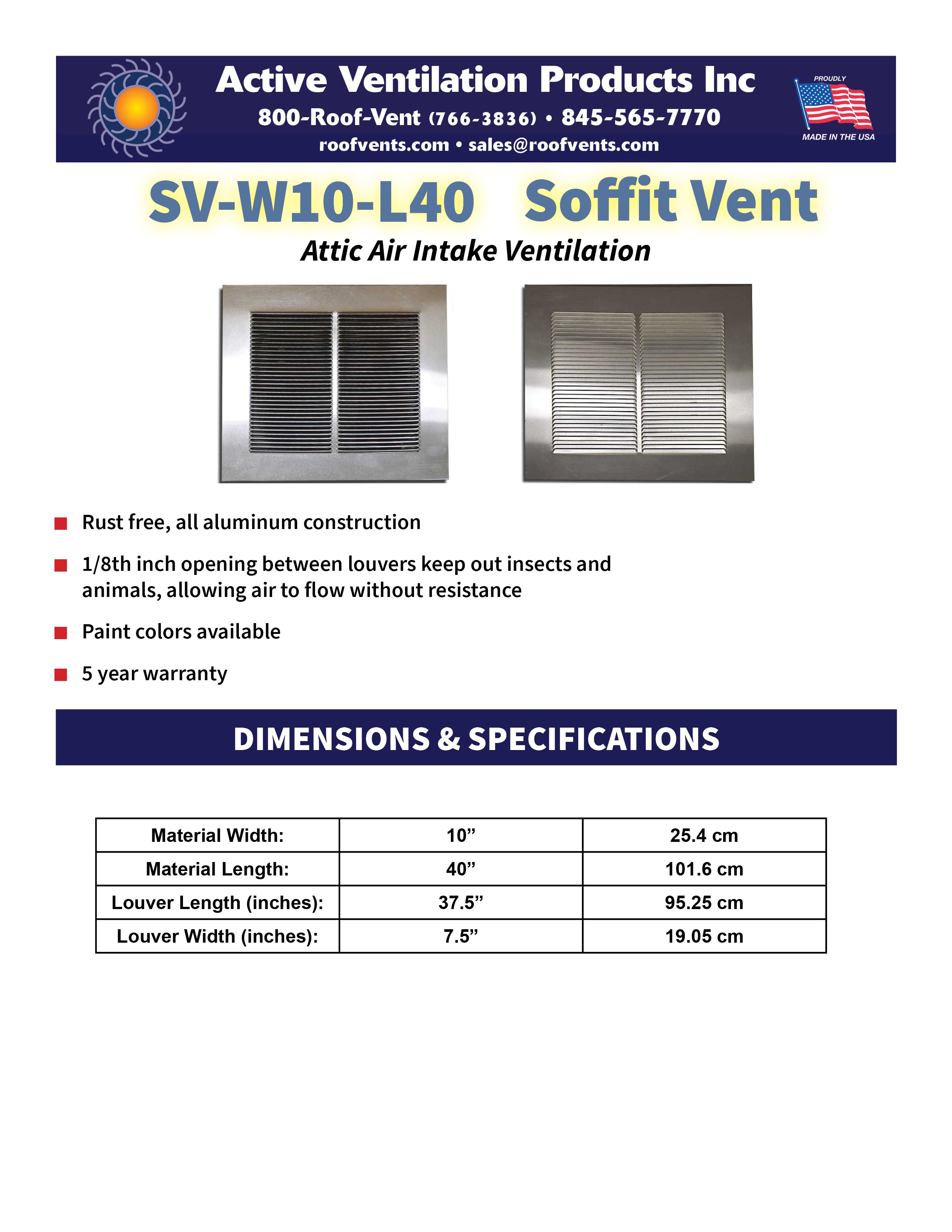 This model is the SV-W10-L48 which is 48 inches long with __ inches of Net Free Area (NFA).