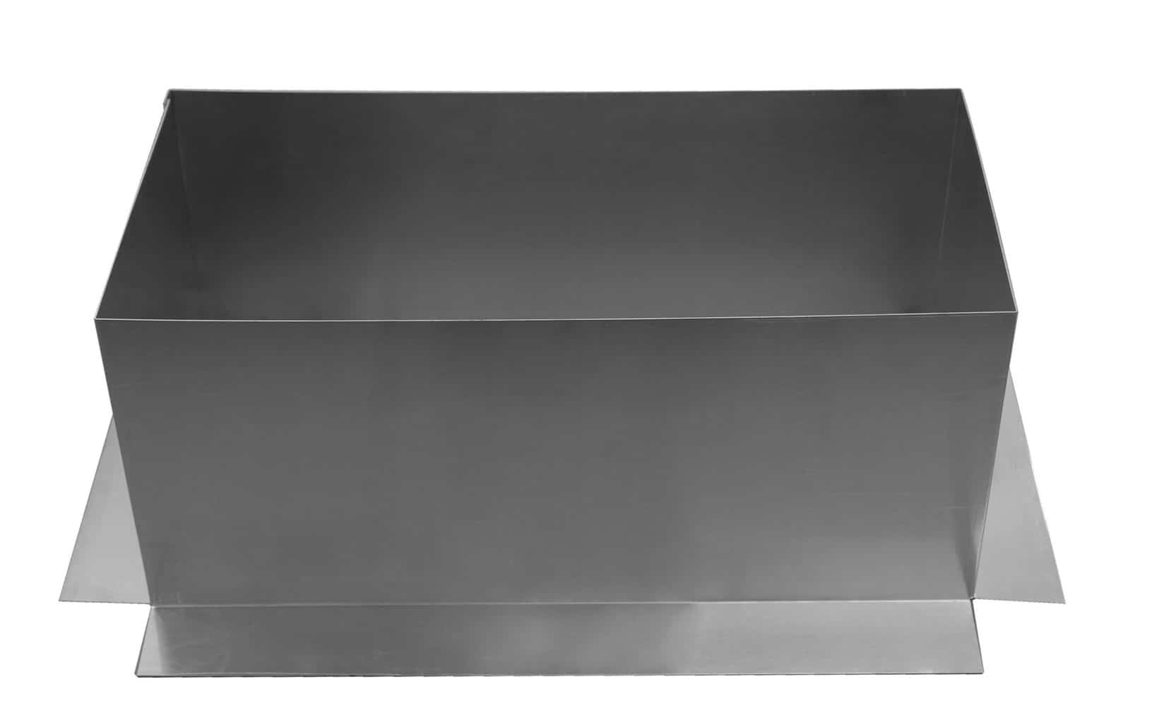 The PP-8x18-H8 is an 8 inch by 18 inch rectangular box with 8 inches in height and has a 12 inch by 22 inch flange. This pitch pan is perfect for covering up any openings in the roof. However, if you need a different size, we offer an array of sizes.