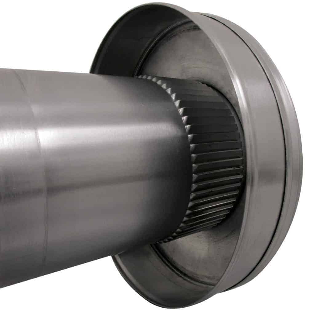 The Roof Jack’s tailpipe is 2 inches long and is corrugated at the bottom to fit existing ductwork. This allows for a quick and easy installation.