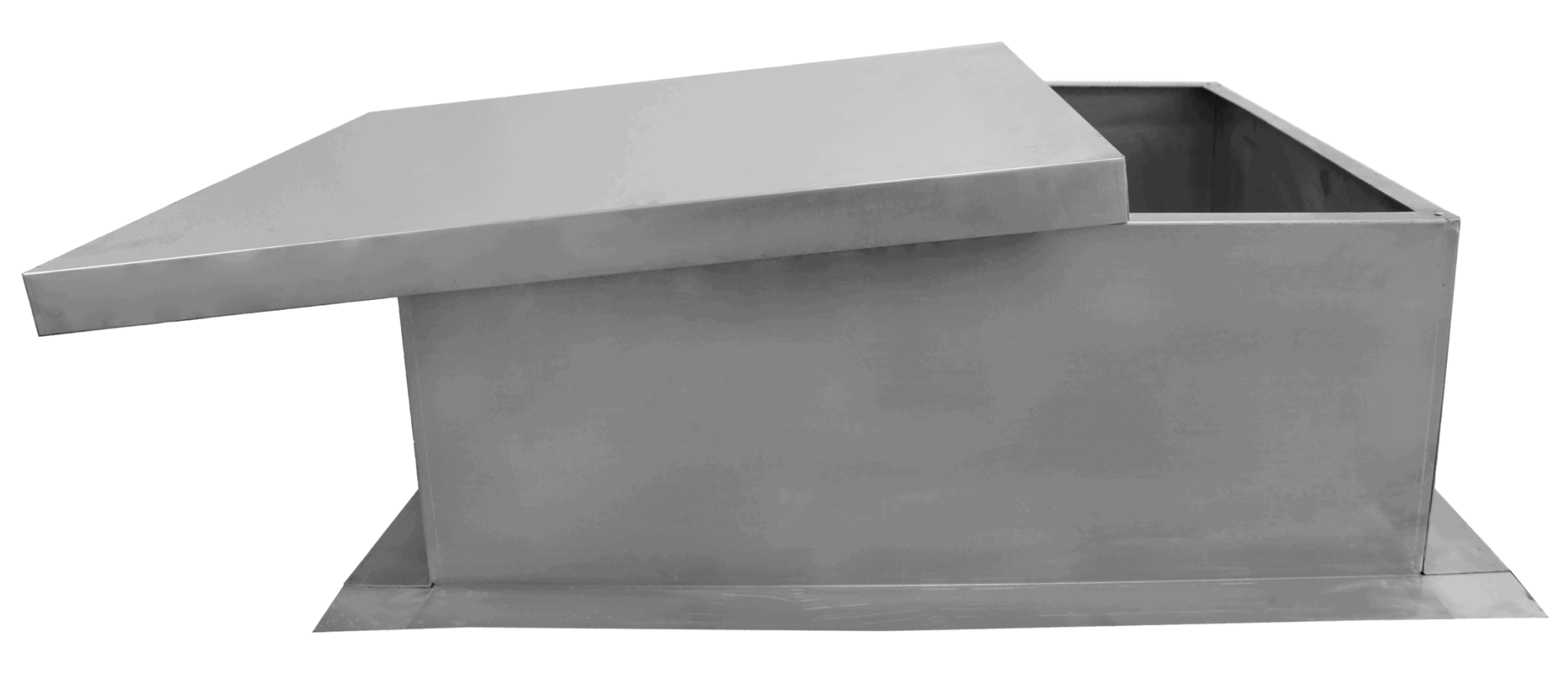 A roof curb is a metal box that acts as a base for a roof vent or fan. Roof curbs can also serve as a hatch, providing easy access to ductwork, HVAC units, or attic maintenance.