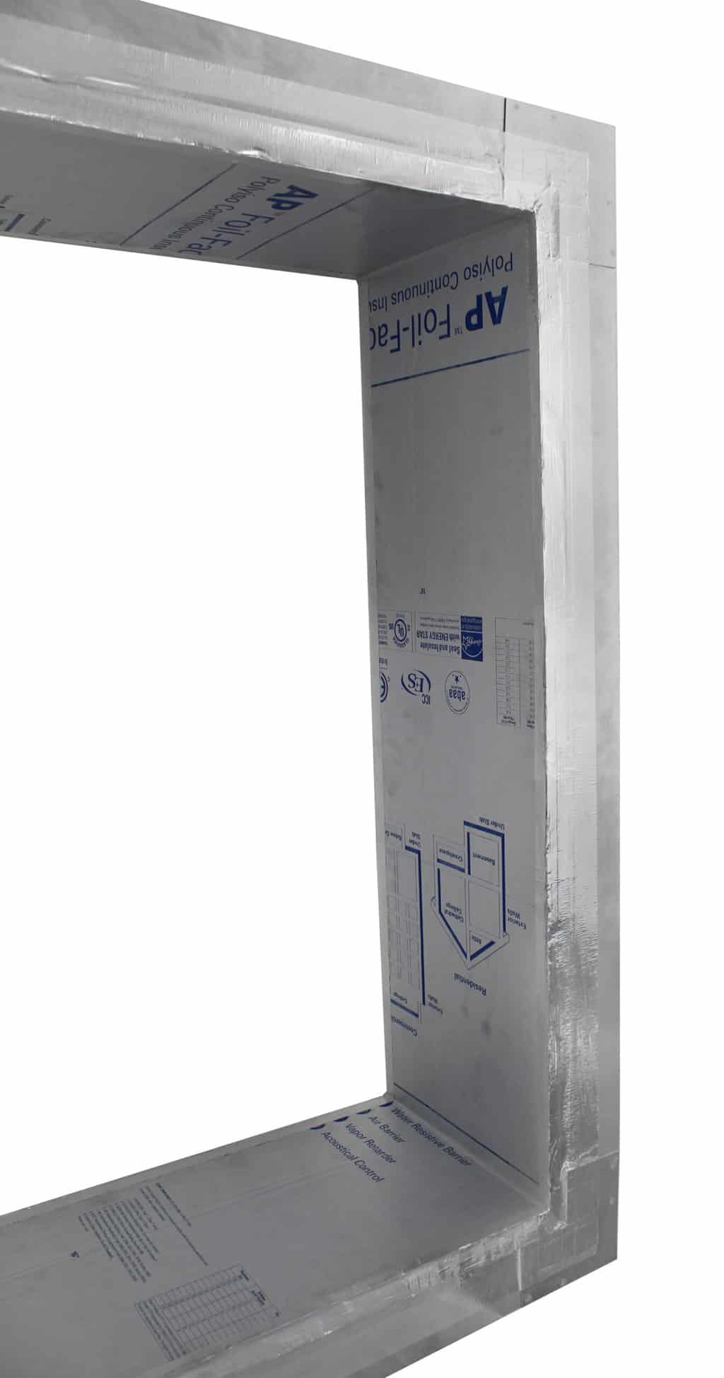 The insulation is Johns Manville R-6, 1-inch thick, foil-faced polyiso board. Polyiso has the highest R-value per inch of any rigid board insulation. This insulation meets both CFC- and HCFC-free specification requirements.