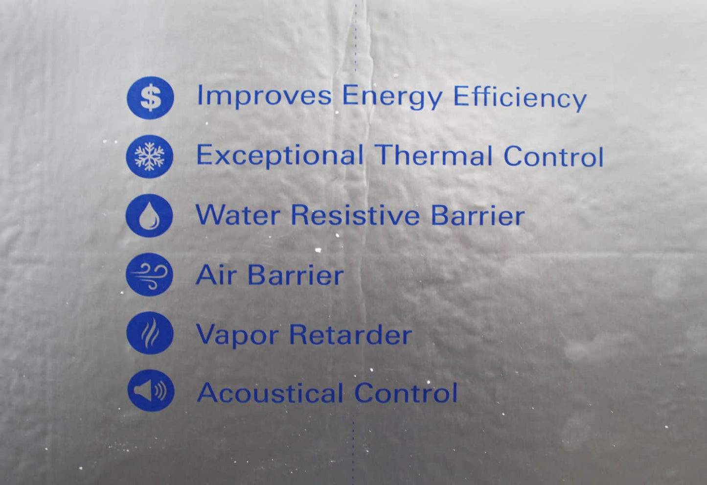 The insulation is Johns Manville R-6, 1-inch thick foil-faced polyiso board. Polyiso has the highest R-value per inch of any rigid board insulation. This insulation meets both CFC- and HCFC-free specification requirements.