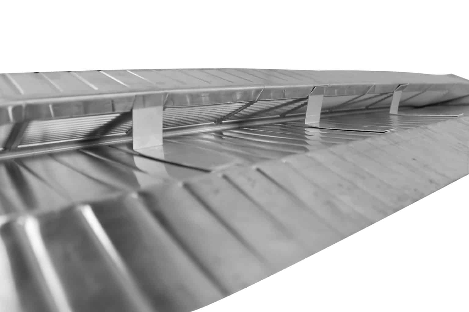 This Universal Vent is an off-ridge vent that can be an exhaust or intake vent. It is a static vent suitable for installation on sloped roofs or parapet walls. This model is the UV-75, which is 55 inches long and has 75 inches of Net Free Area (NFA).