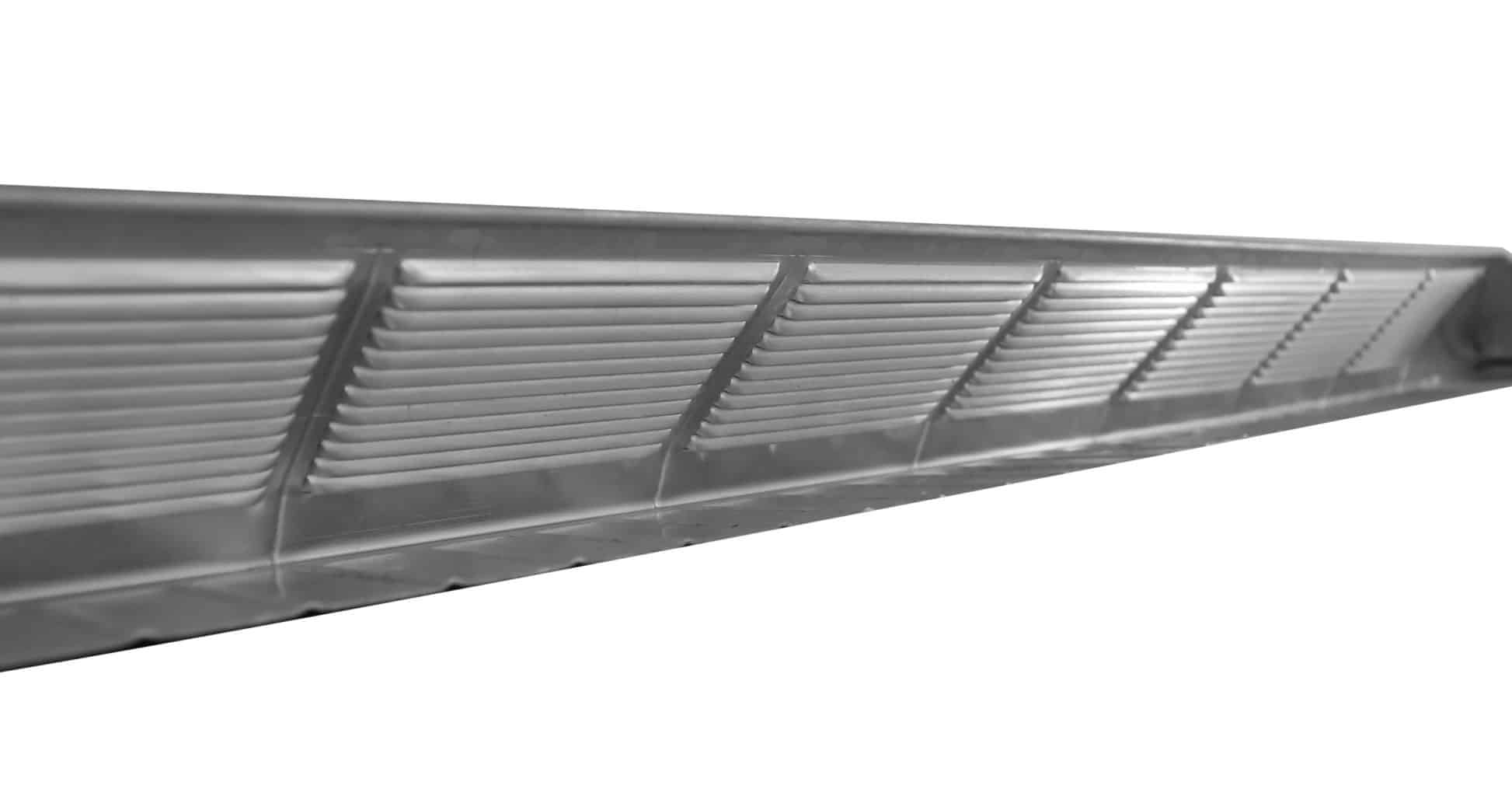 The 1/8-inch opening between the louvers keeps out precipitation and wildlife while allowing air to move freely.